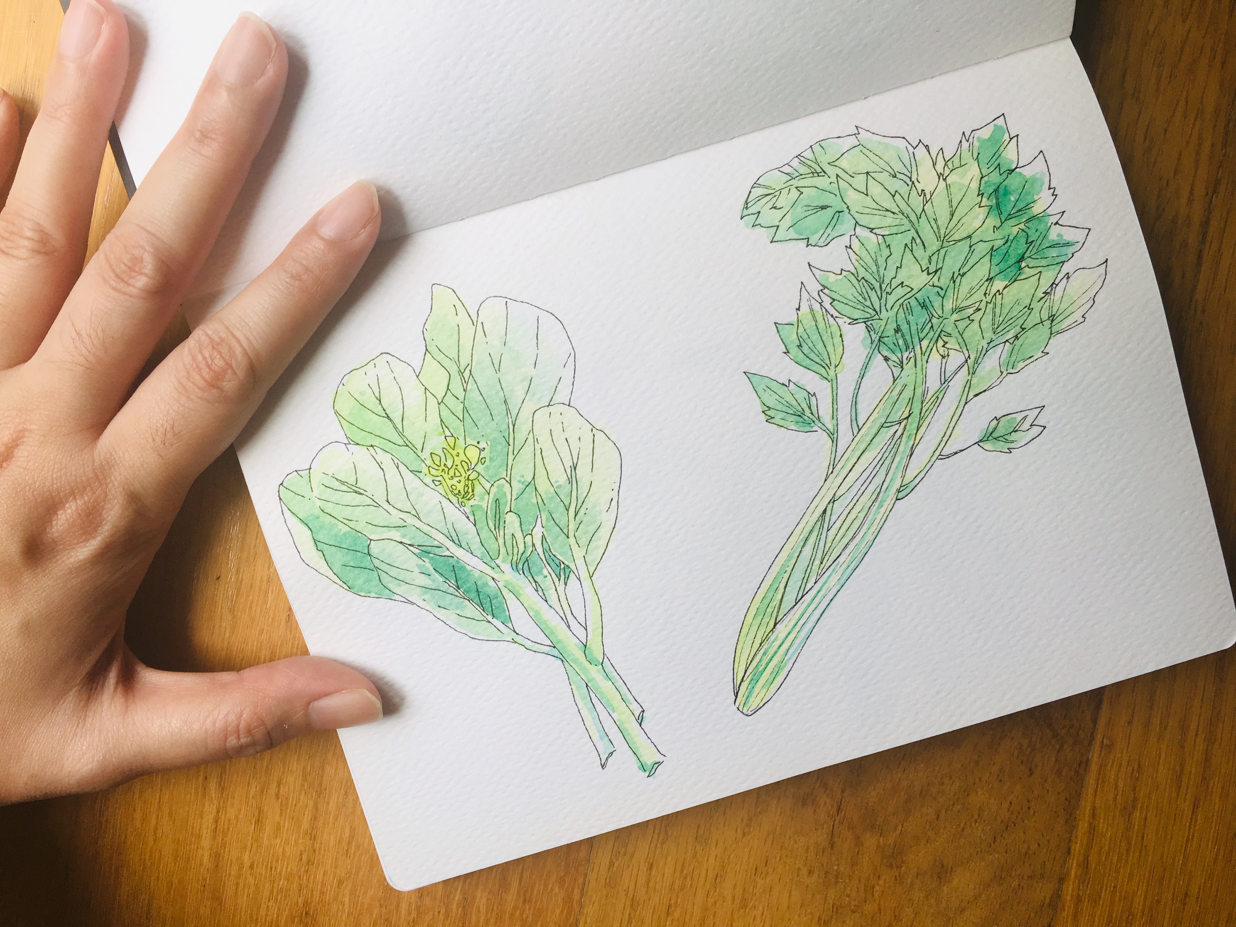 Jadi lah, gw ngegambar sayur dan buah, hahaha. Nyoba beberapa teknik, karena gw belum terbiasa ngegambar tanaman. Pertama, mau pake outline kebiasaan gw (garis item tebel spidol), tapi kok… Jadinya… Ruwet amat…